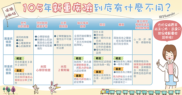 重疾的新定義請詳閱條款內容(註1),文中僅列出重點唷!若要了解舊的重疾險定義,則可參考小編先前整理的懶人包(註2)!